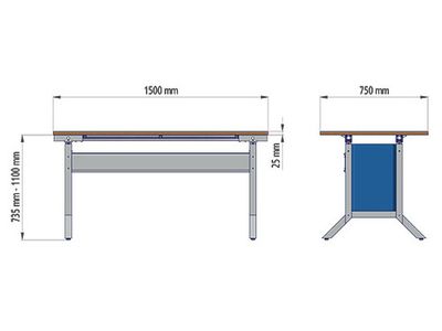 Workline-Arbeitstisch Breite 1500 mm, höhenverstellbar mit Klemmfeststellung Art.Nr. 07.75.15A