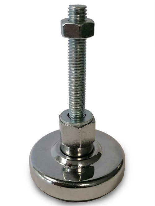 Teller Ø 50 mm Fuß Stahlblech poliert und verchromt Leichte Höhenverstellung mit Schwingungsdämpfung ArtNr. 01.ASF50-M8